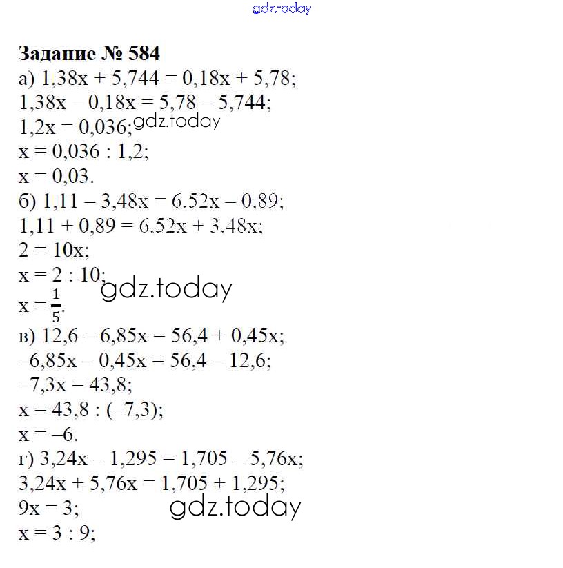 Ответы к Решение к упражнениям 584 Учебнику по Математике для 6 класса Зубарева, Мордкович Мнемозина 2015