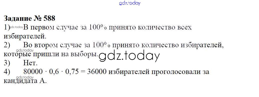 Ответы к Решение к упражнениям 588 Учебнику по Математике для 6 класса Зубарева, Мордкович Мнемозина 2015