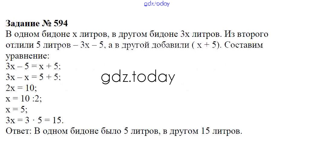 Ответы к Решение к упражнениям 594 Учебнику по Математике для 6 класса Зубарева, Мордкович Мнемозина 2015