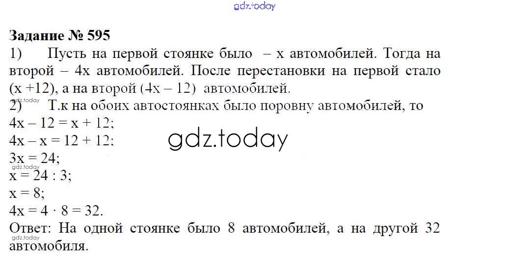 Ответы к Решение к упражнениям 595 Учебнику по Математике для 6 класса Зубарева, Мордкович Мнемозина 2015