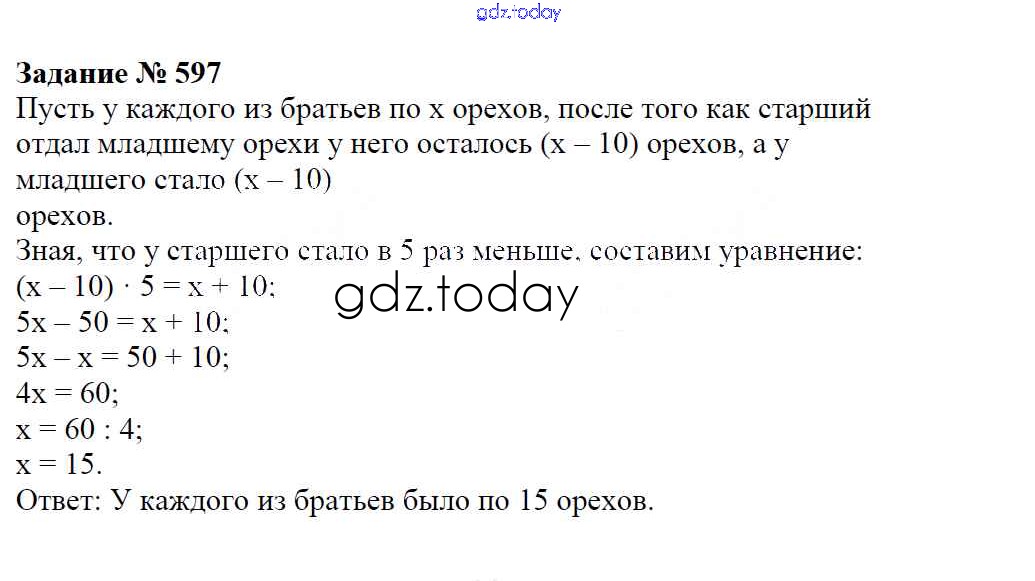 Ответы к Решение к упражнениям 597 Учебнику по Математике для 6 класса Зубарева, Мордкович Мнемозина 2015