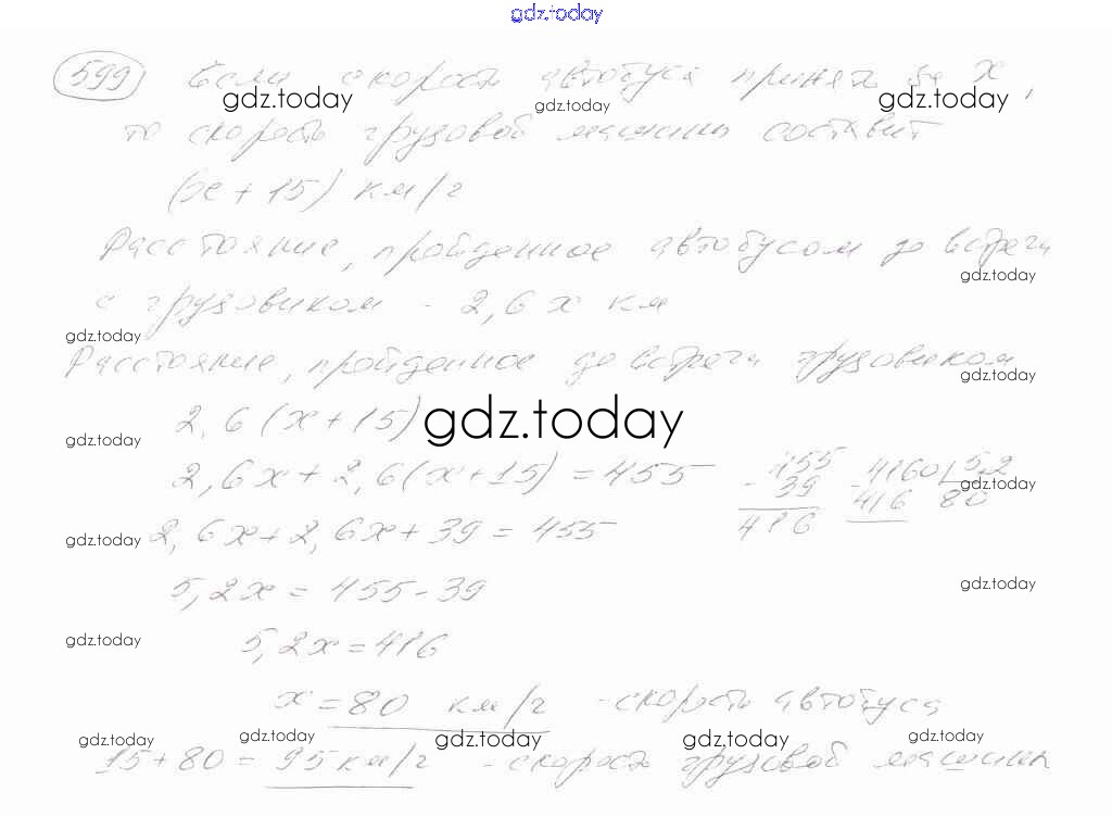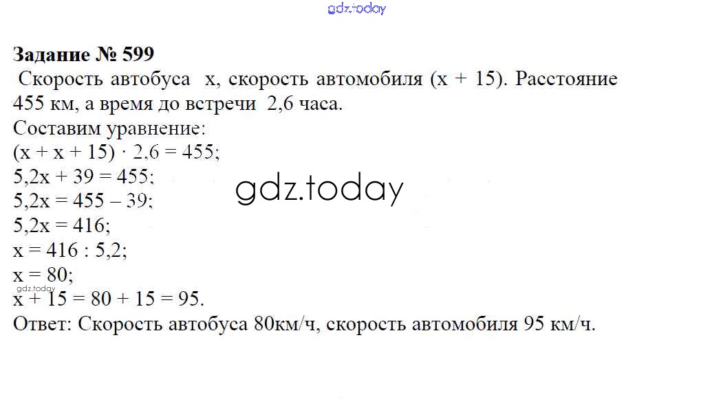 Ответы к Решение к упражнениям 599 Учебнику по Математике для 6 класса Зубарева, Мордкович Мнемозина 2015