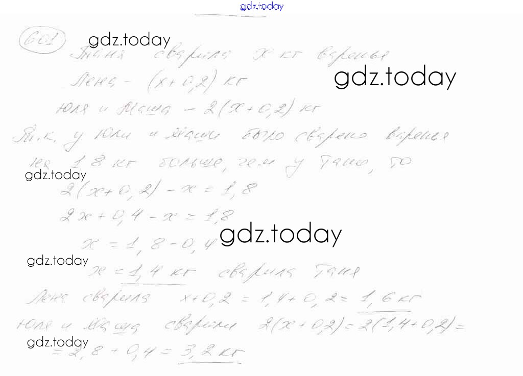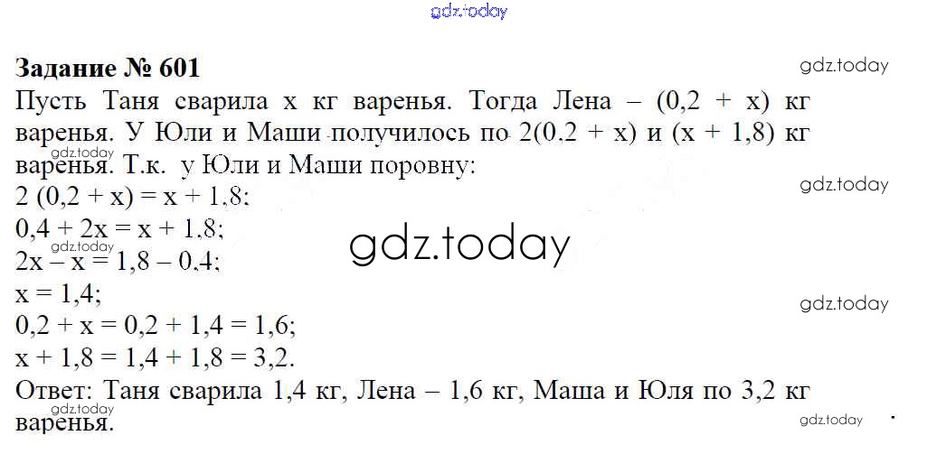Ответы к Решение к упражнениям 601 Учебнику по Математике для 6 класса Зубарева, Мордкович Мнемозина 2015