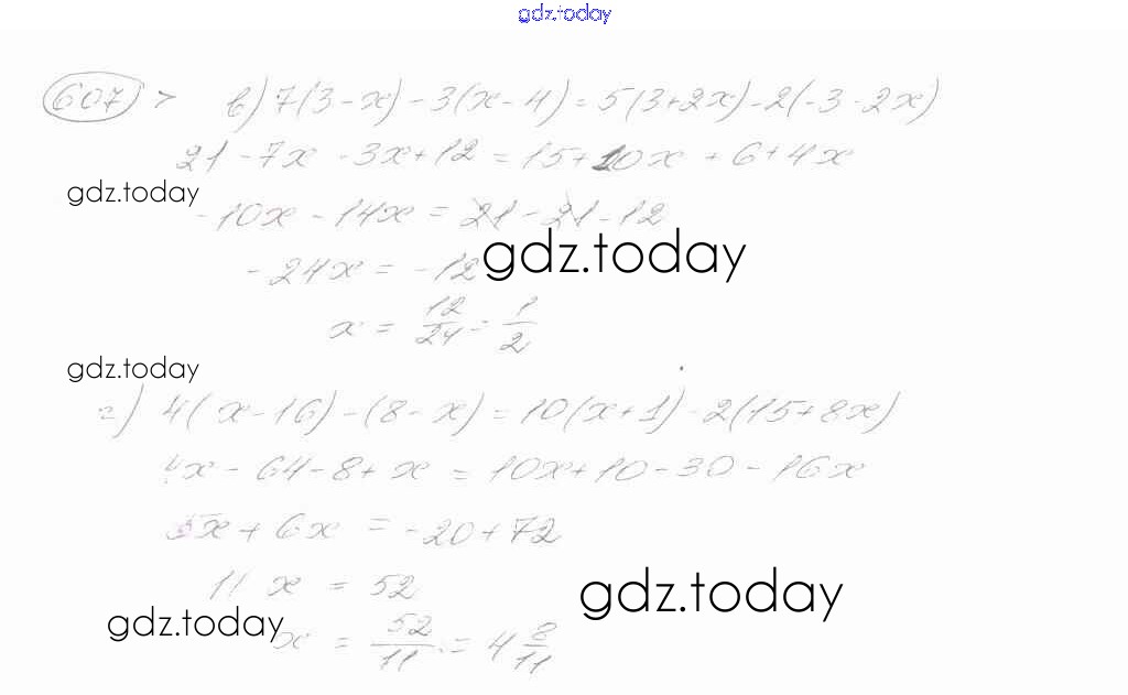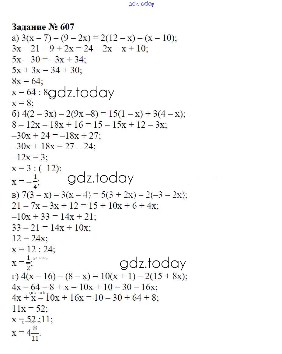 Ответы к Решение к упражнениям 607 Учебнику по Математике для 6 класса Зубарева, Мордкович Мнемозина 2015