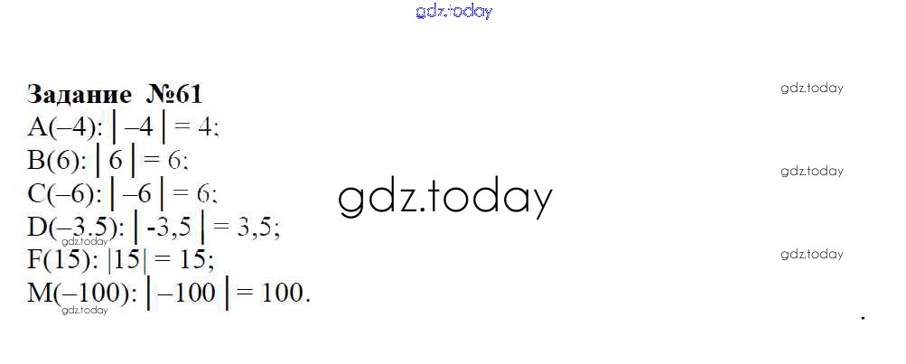 На страницах сайта gdz.today вы найдете учебный и вспомогательный материал, направленный на улучшения знаний школьной программы. ГДЗ - онлайн мир знаний Решение к упражнениям 61 Учебнику по Математике для 6 класса Зубарева, Мордкович Мнемозина 2015