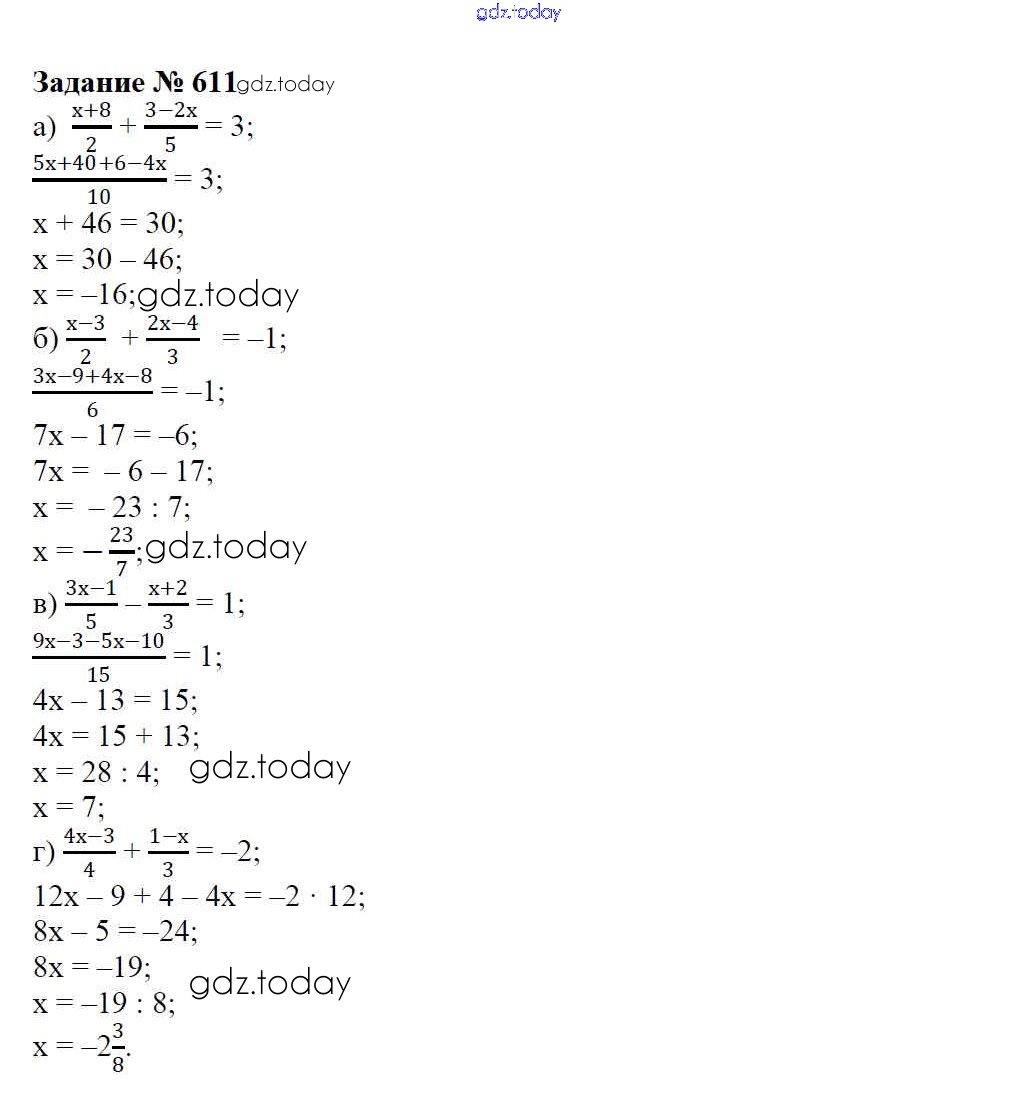 Ответы к Решение к упражнениям 611 Учебнику по Математике для 6 класса Зубарева, Мордкович Мнемозина 2015