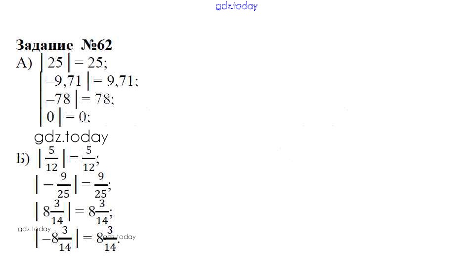 На страницах сайта gdz.today вы найдете учебный и вспомогательный материал, направленный на улучшения знаний школьной программы. ГДЗ - онлайн мир знаний Решение к упражнениям 62 Учебнику по Математике для 6 класса Зубарева, Мордкович Мнемозина 2015