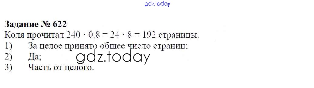 Ответы к Решение к упражнениям 622 Учебнику по Математике для 6 класса Зубарева, Мордкович Мнемозина 2015