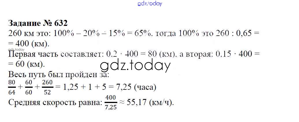 На страницах сайта gdz.today вы найдете учебный и вспомогательный материал, направленный на улучшения знаний школьной программы. ГДЗ - онлайн мир знаний Решение к упражнениям 632 Учебнику по Математике для 6 класса Зубарева, Мордкович Мнемозина 2015