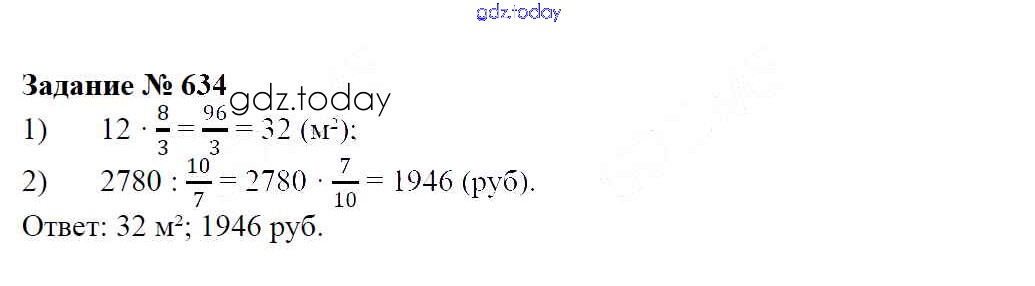 Ответы к Решение к упражнениям 634 Учебнику по Математике для 6 класса Зубарева, Мордкович Мнемозина 2015