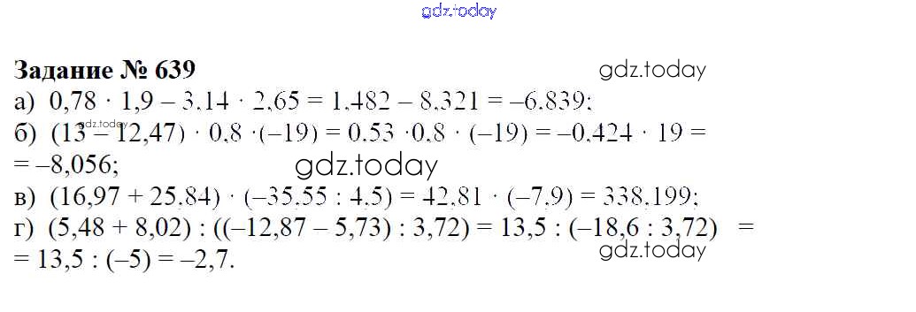 На страницах сайта gdz.today вы найдете учебный и вспомогательный материал, направленный на улучшения знаний школьной программы. ГДЗ - онлайн мир знаний Решение к упражнениям 639 Учебнику по Математике для 6 класса Зубарева, Мордкович Мнемозина 2015