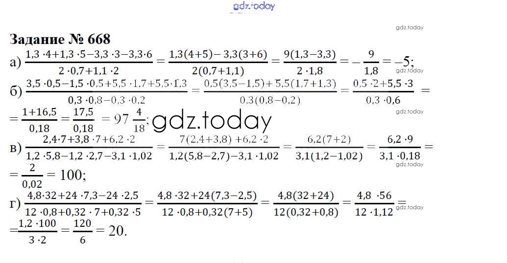 Ответы к Решение к упражнениям 668 Учебнику по Математике для 6 класса Зубарева, Мордкович Мнемозина 2015