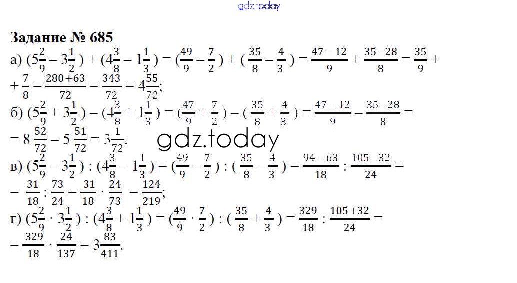 На страницах сайта gdz.today вы найдете учебный и вспомогательный материал, направленный на улучшения знаний школьной программы. ГДЗ - онлайн мир знаний Решение к упражнениям 685 Учебнику по Математике для 6 класса Зубарева, Мордкович Мнемозина 2015