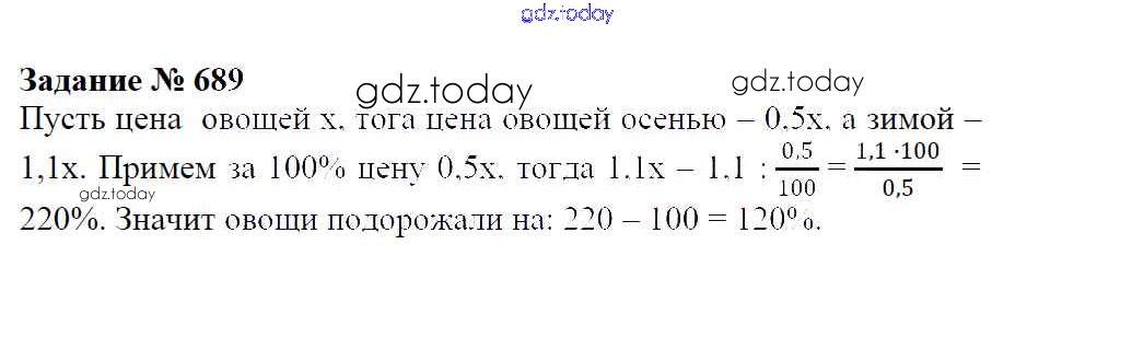 Ответы к Решение к упражнениям 689 Учебнику по Математике для 6 класса Зубарева, Мордкович Мнемозина 2015