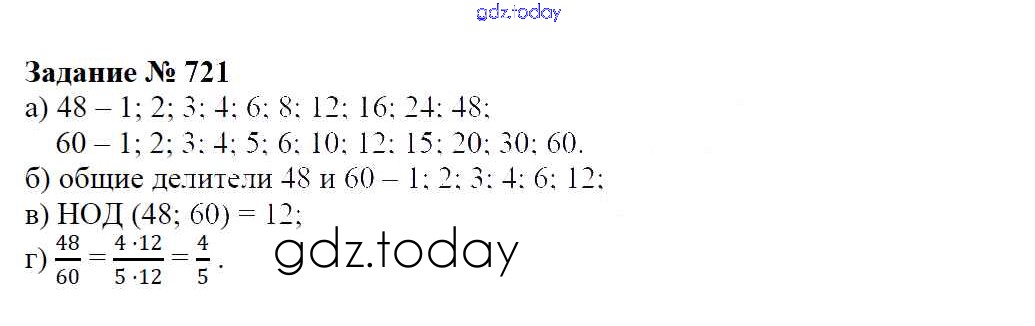 На страницах сайта gdz.today вы найдете учебный и вспомогательный материал, направленный на улучшения знаний школьной программы. ГДЗ - онлайн мир знаний Решение к упражнениям 721 Учебнику по Математике для 6 класса Зубарева, Мордкович Мнемозина 2015