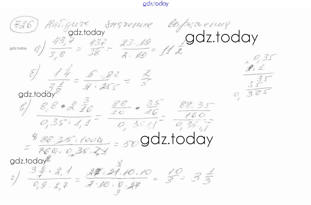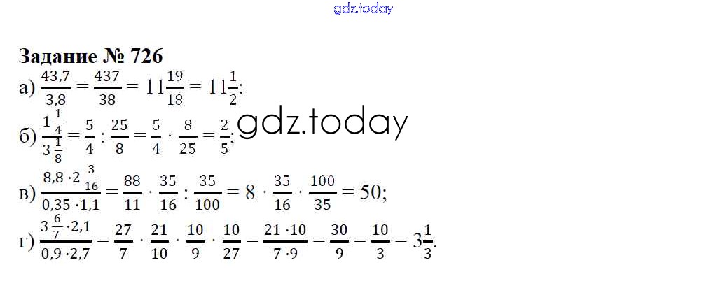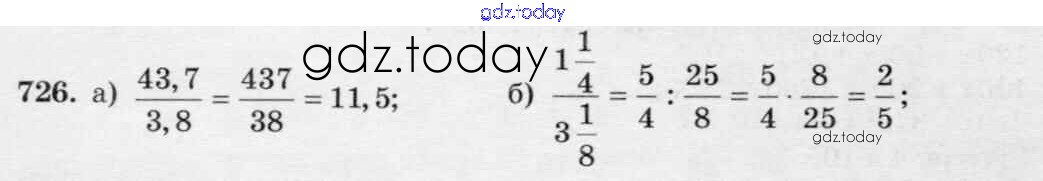 Ответы к Решение к упражнениям 726 Учебнику по Математике для 6 класса Зубарева, Мордкович Мнемозина 2015
