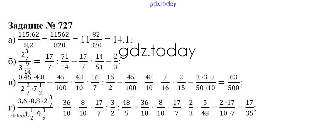 Ответы к Решение к упражнениям 727 Учебнику по Математике для 6 класса Зубарева, Мордкович Мнемозина 2015