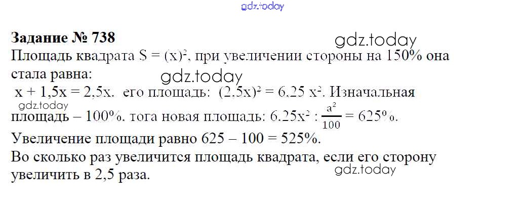 Ответы к Решение к упражнениям 738 Учебнику по Математике для 6 класса Зубарева, Мордкович Мнемозина 2015