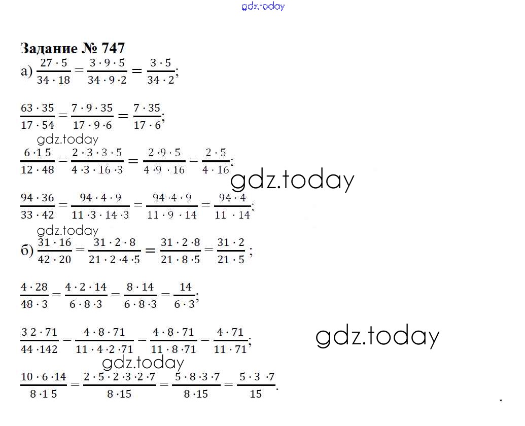 Ответы к Решение к упражнениям 747 Учебнику по Математике для 6 класса Зубарева, Мордкович Мнемозина 2015
