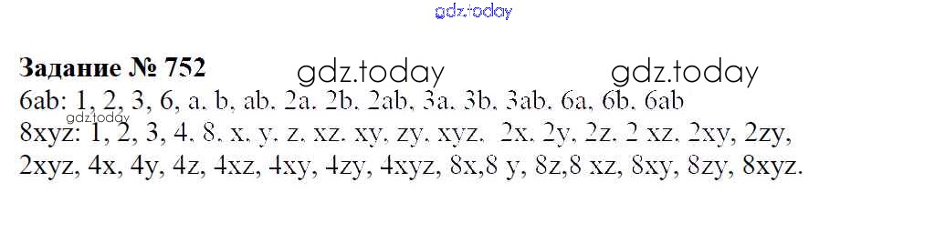 Ответы к Решение к упражнениям 752 Учебнику по Математике для 6 класса Зубарева, Мордкович Мнемозина 2015