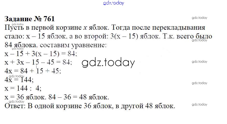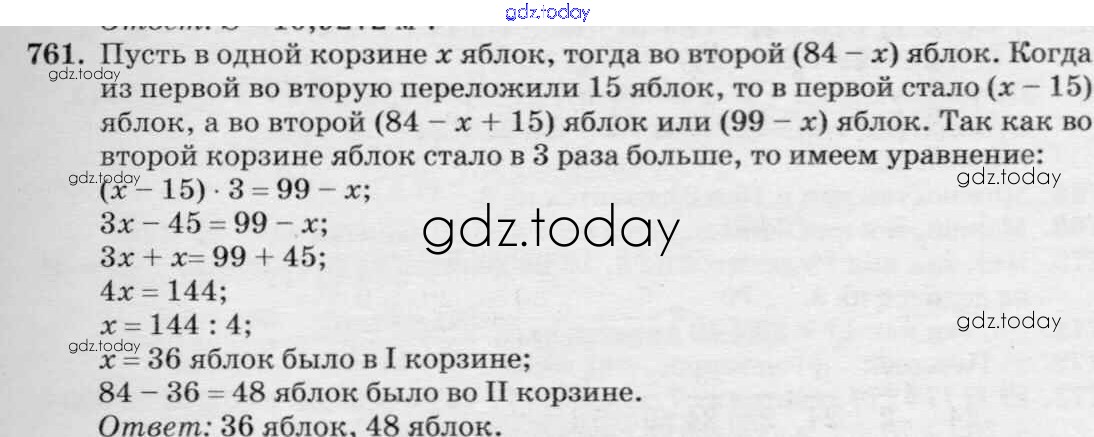 Ответы к Решение к упражнениям 761 Учебнику по Математике для 6 класса Зубарева, Мордкович Мнемозина 2015