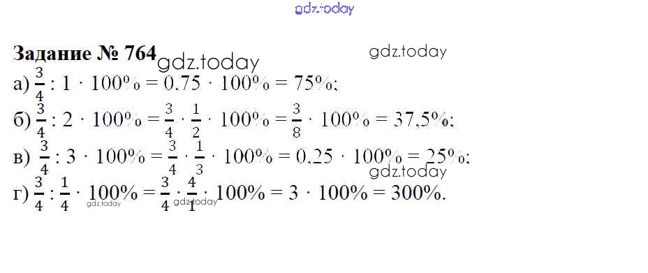 Ответы к Решение к упражнениям 764 Учебнику по Математике для 6 класса Зубарева, Мордкович Мнемозина 2015