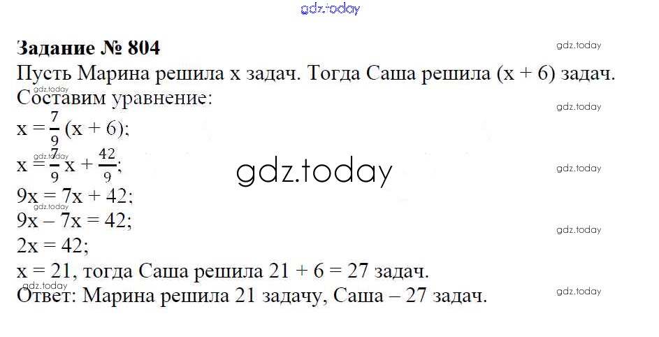 Ответы к Решение к упражнениям 804 Учебнику по Математике для 6 класса Зубарева, Мордкович Мнемозина 2015