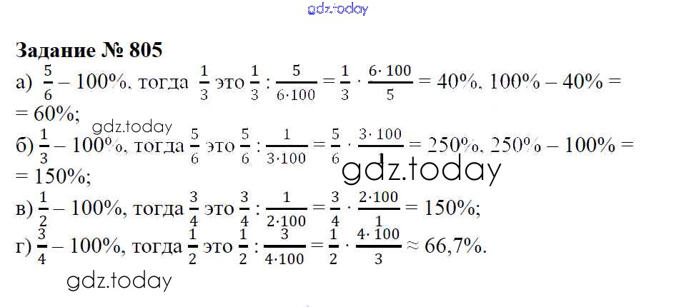 Ответы к Решение к упражнениям 805 Учебнику по Математике для 6 класса Зубарева, Мордкович Мнемозина 2015