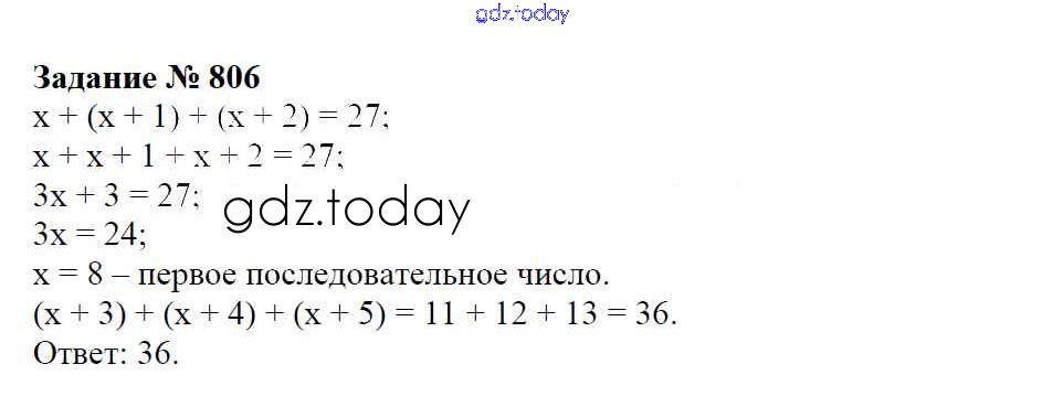 Ответы к Решение к упражнениям 806 Учебнику по Математике для 6 класса Зубарева, Мордкович Мнемозина 2015