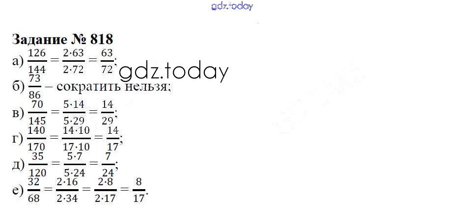 Ответы к Решение к упражнениям 818 Учебнику по Математике для 6 класса Зубарева, Мордкович Мнемозина 2015
