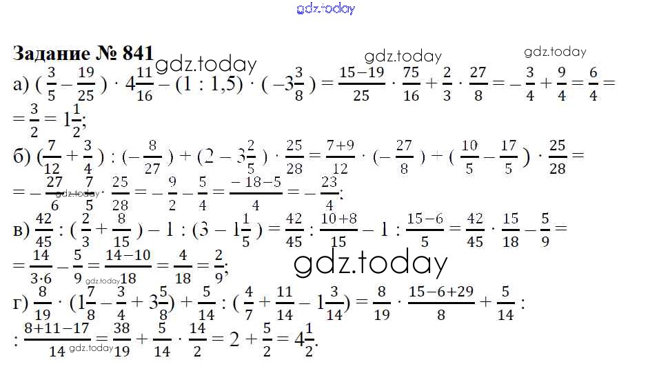 Ответы к Решение к упражнениям 841 Учебнику по Математике для 6 класса Зубарева, Мордкович Мнемозина 2015