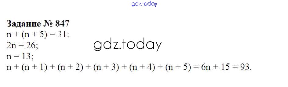 Ответы к Решение к упражнениям 847 Учебнику по Математике для 6 класса Зубарева, Мордкович Мнемозина 2015