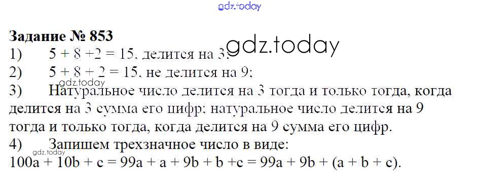 На страницах сайта gdz.today вы найдете учебный и вспомогательный материал, направленный на улучшения знаний школьной программы. ГДЗ - онлайн мир знаний Решение к упражнениям 853 Учебнику по Математике для 6 класса Зубарева, Мордкович Мнемозина 2015