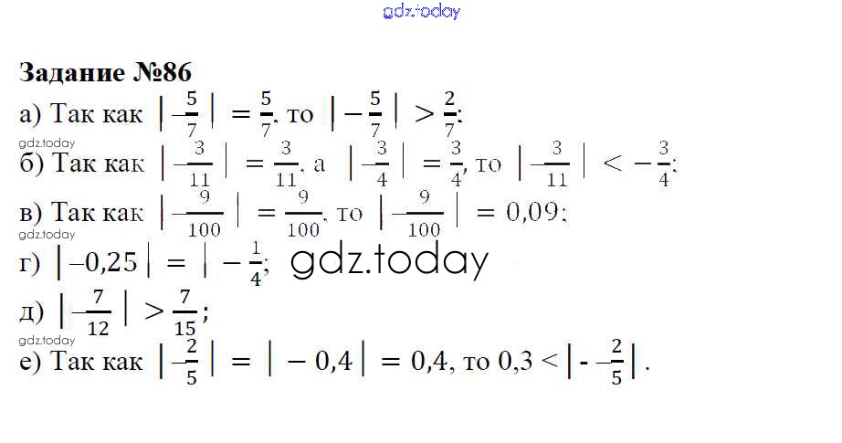 На страницах сайта gdz.today вы найдете учебный и вспомогательный материал, направленный на улучшения знаний школьной программы. ГДЗ - онлайн мир знаний Решение к упражнениям 86 Учебнику по Математике для 6 класса Зубарева, Мордкович Мнемозина 2015