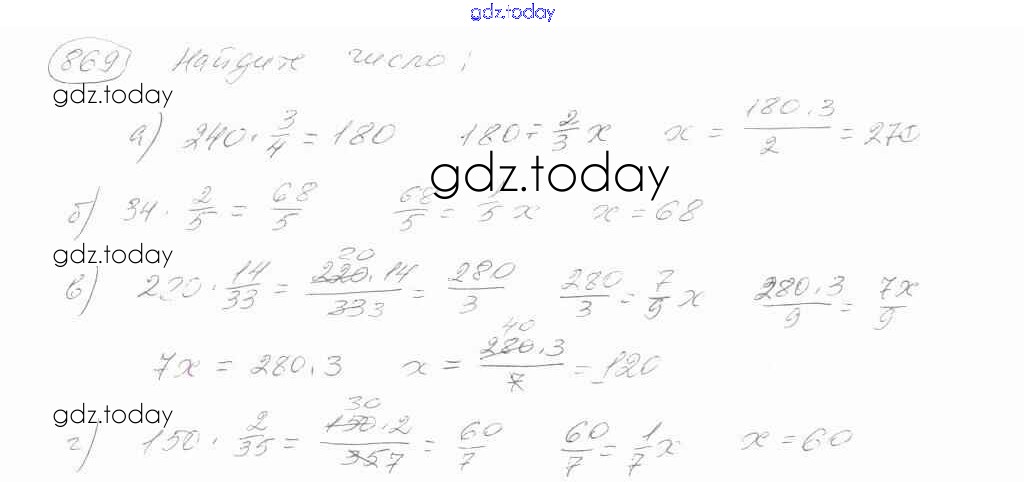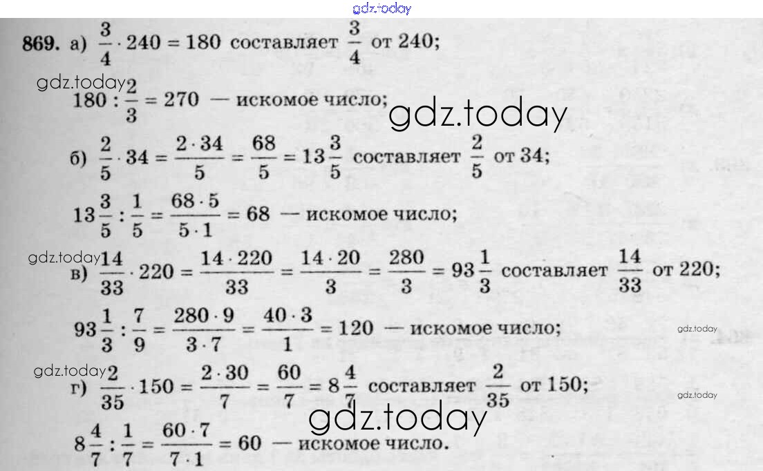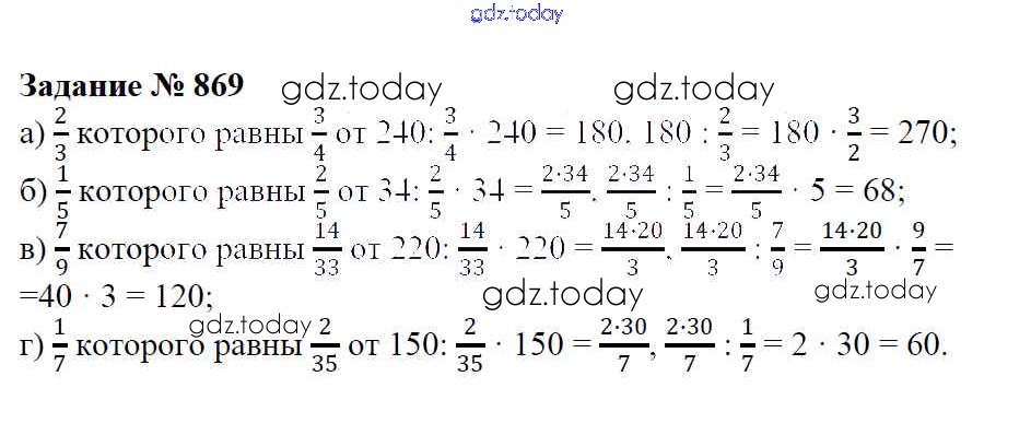 Ответы к Решение к упражнениям 869 Учебнику по Математике для 6 класса Зубарева, Мордкович Мнемозина 2015