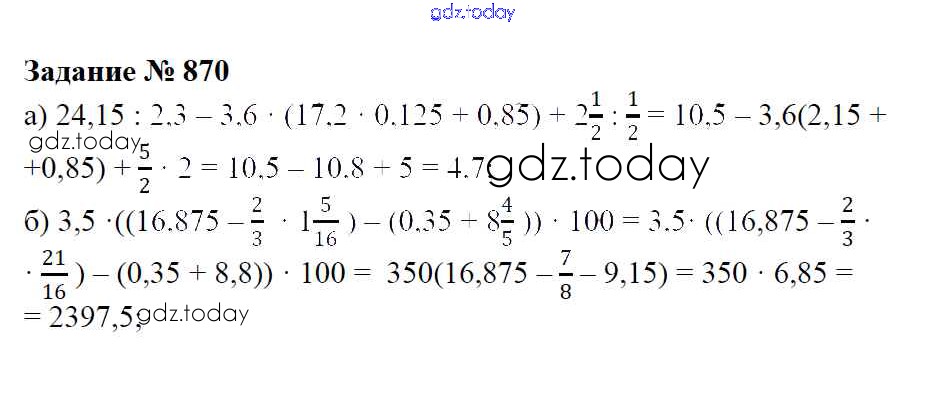 На страницах сайта gdz.today вы найдете учебный и вспомогательный материал, направленный на улучшения знаний школьной программы. ГДЗ - онлайн мир знаний Решение к упражнениям 870 Учебнику по Математике для 6 класса Зубарева, Мордкович Мнемозина 2015