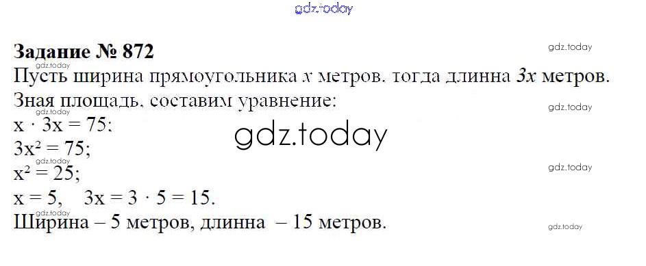 Ответы к Решение к упражнениям 872 Учебнику по Математике для 6 класса Зубарева, Мордкович Мнемозина 2015