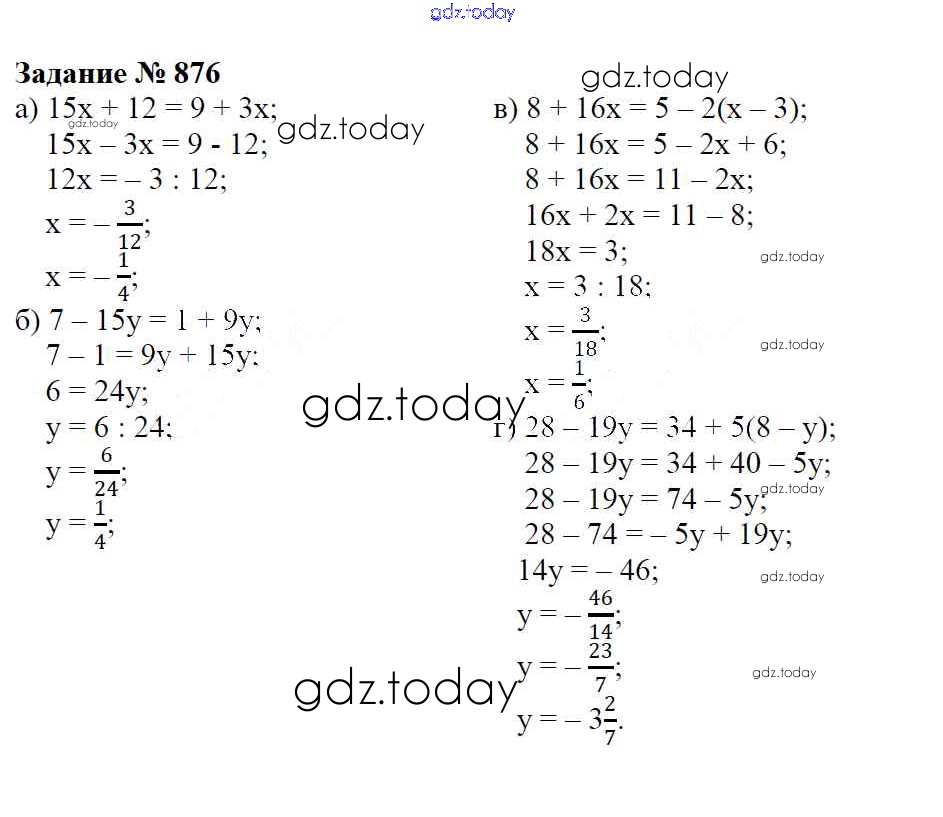 Ответы к Решение к упражнениям 876 Учебнику по Математике для 6 класса Зубарева, Мордкович Мнемозина 2015