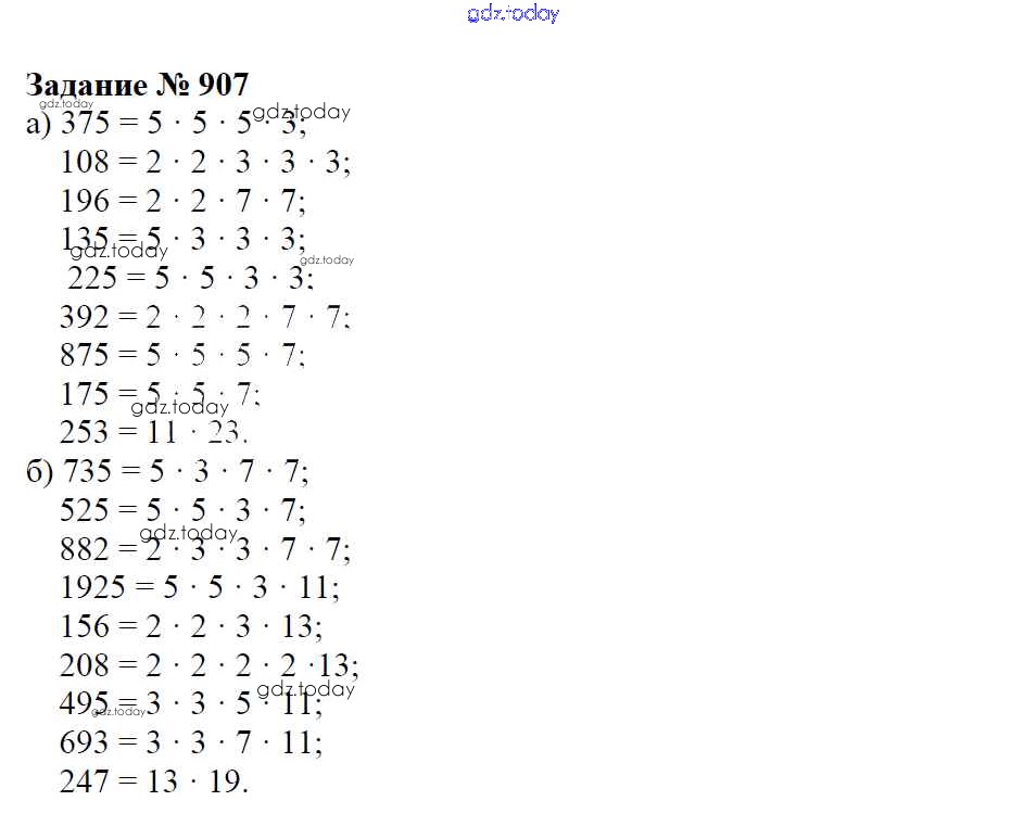 Ответы к Решение к упражнениям 907 Учебнику по Математике для 6 класса Зубарева, Мордкович Мнемозина 2015