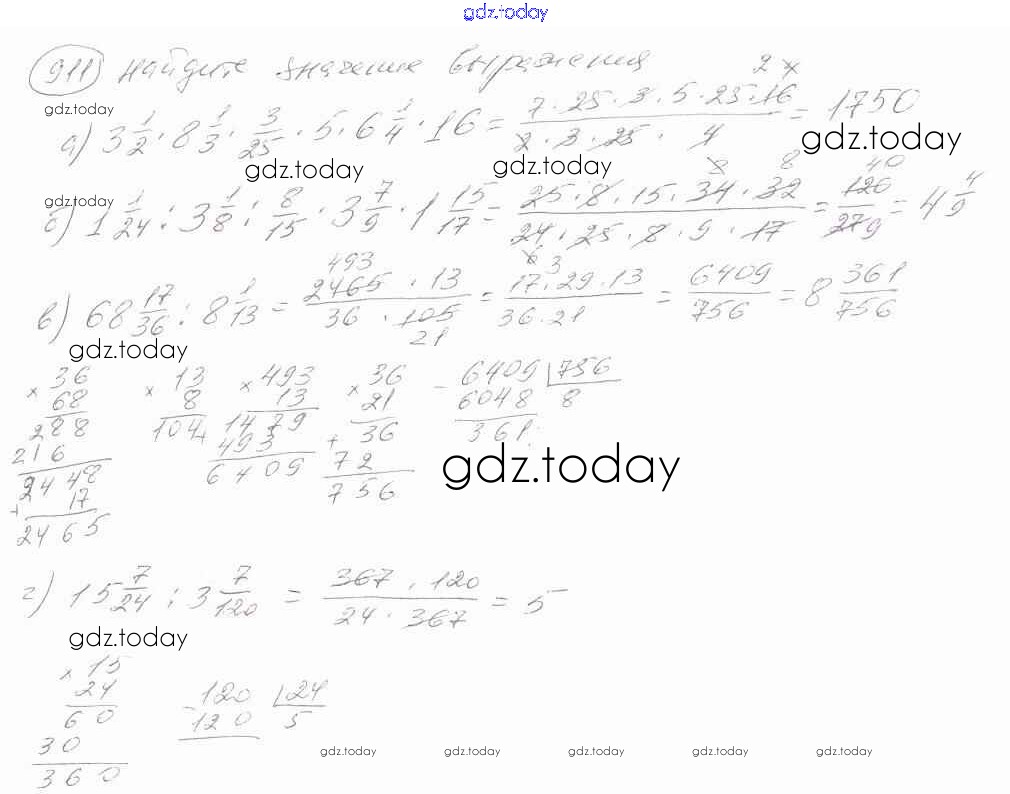 Ответы к Решение к упражнениям 911 Учебнику по Математике для 6 класса Зубарева, Мордкович Мнемозина 2015