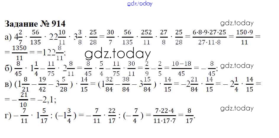 Ответы к Решение к упражнениям 914 Учебнику по Математике для 6 класса Зубарева, Мордкович Мнемозина 2015