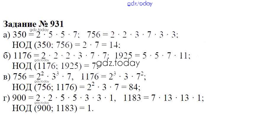 Ответы к Решение к упражнениям 931 Учебнику по Математике для 6 класса Зубарева, Мордкович Мнемозина 2015