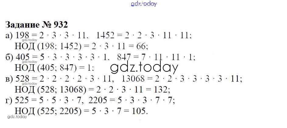 На страницах сайта gdz.today вы найдете учебный и вспомогательный материал, направленный на улучшения знаний школьной программы. ГДЗ - онлайн мир знаний Решение к упражнениям 932 Учебнику по Математике для 6 класса Зубарева, Мордкович Мнемозина 2015