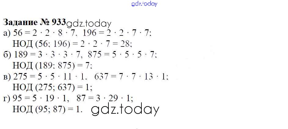 На страницах сайта gdz.today вы найдете учебный и вспомогательный материал, направленный на улучшения знаний школьной программы. ГДЗ - онлайн мир знаний Решение к упражнениям 933 Учебнику по Математике для 6 класса Зубарева, Мордкович Мнемозина 2015