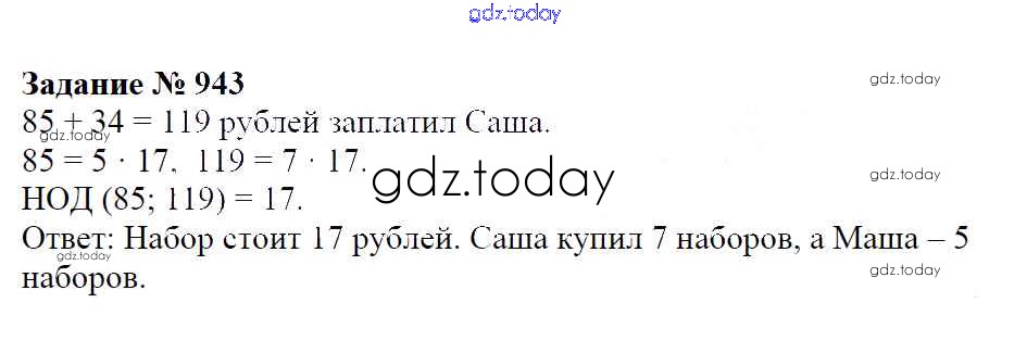 Ответы к Решение к упражнениям 943 Учебнику по Математике для 6 класса Зубарева, Мордкович Мнемозина 2015