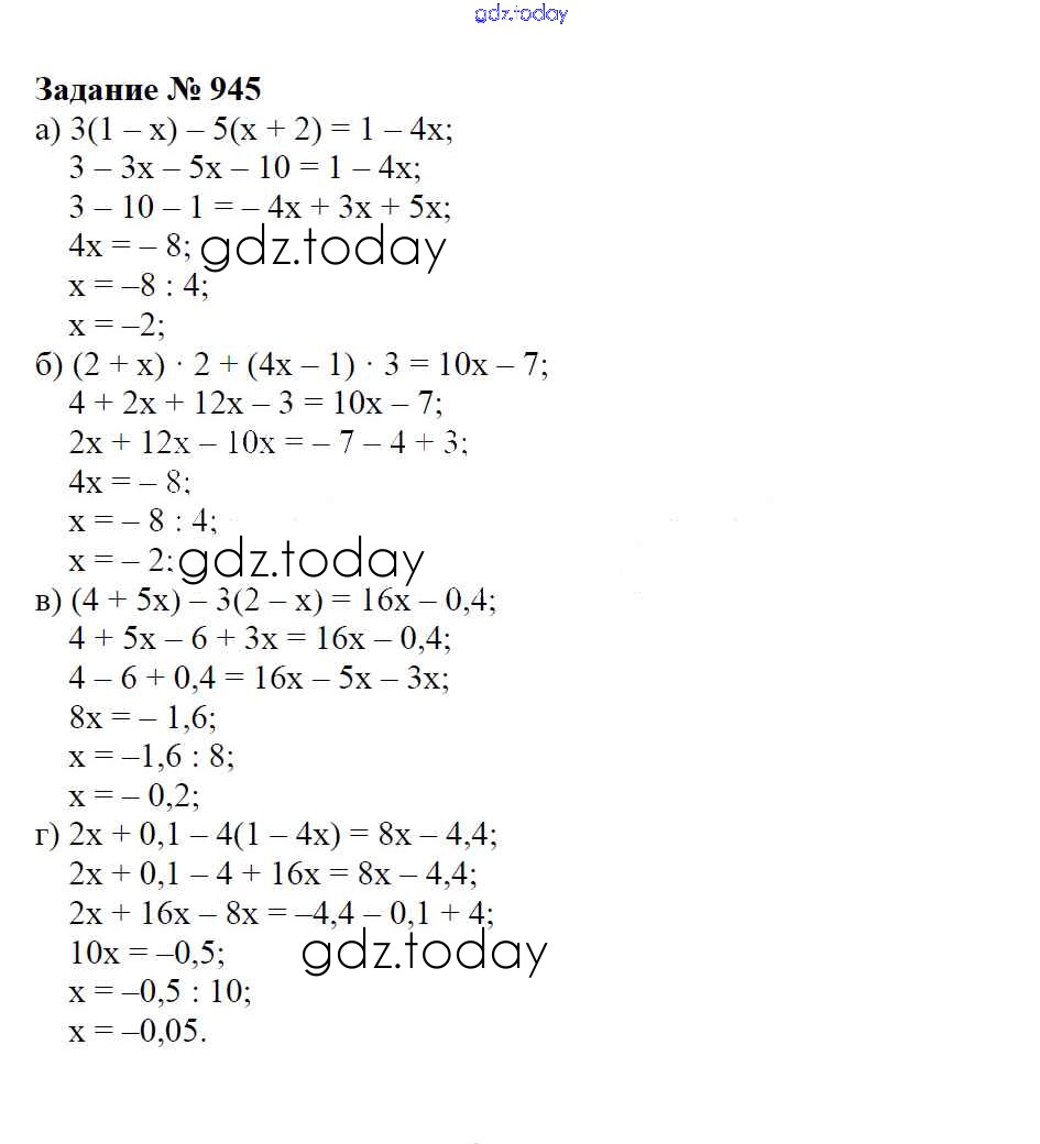 Ответы к Решение к упражнениям 945 Учебнику по Математике для 6 класса Зубарева, Мордкович Мнемозина 2015