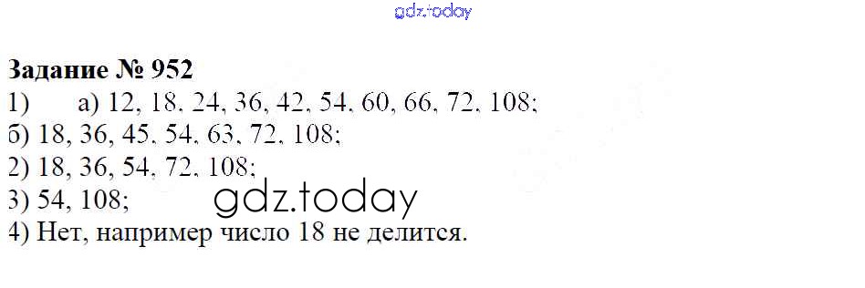 Ответы к Решение к упражнениям 952 Учебнику по Математике для 6 класса Зубарева, Мордкович Мнемозина 2015