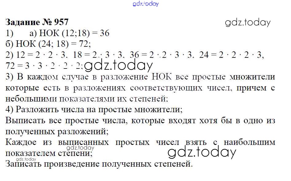 На страницах сайта gdz.today вы найдете учебный и вспомогательный материал, направленный на улучшения знаний школьной программы. ГДЗ - онлайн мир знаний Решение к упражнениям 957 Учебнику по Математике для 6 класса Зубарева, Мордкович Мнемозина 2015