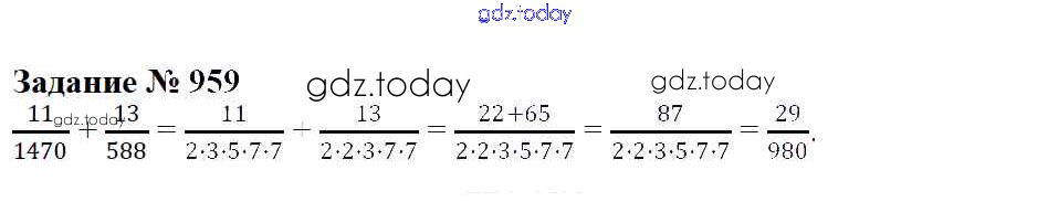 Ответы к Решение к упражнениям 959 Учебнику по Математике для 6 класса Зубарева, Мордкович Мнемозина 2015