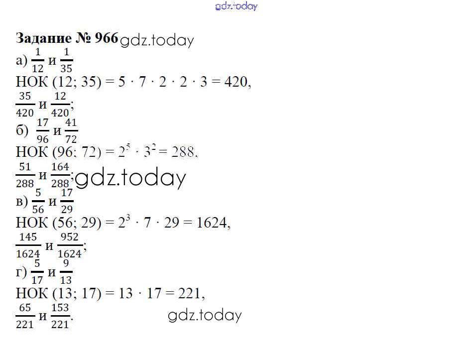 Ответы к Решение к упражнениям 966 Учебнику по Математике для 6 класса Зубарева, Мордкович Мнемозина 2015